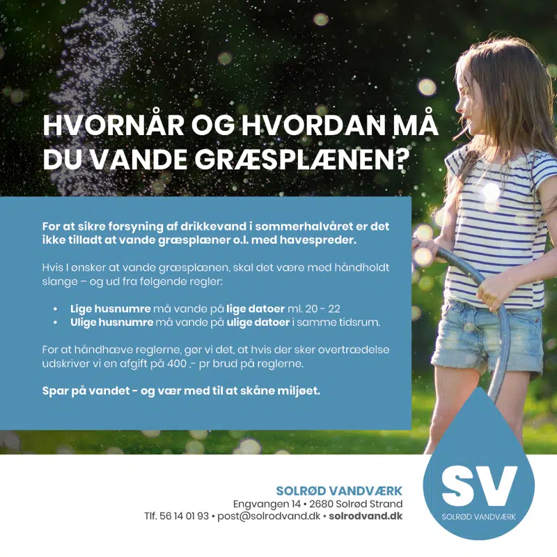Har du spørgsmål til havevanding eller kapacitet, så kontakt Solrød Vandværk på: